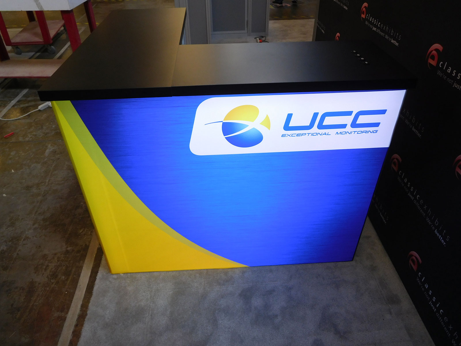 MOD-1702 Backlit Counter with Fabric Graphics, Locking Storage, and MOD-225 USB Charging Ports MOD-1702 Backlit Counter with Fabric Graphics, Locking Storage, and MOD-225 USB Charging Ports