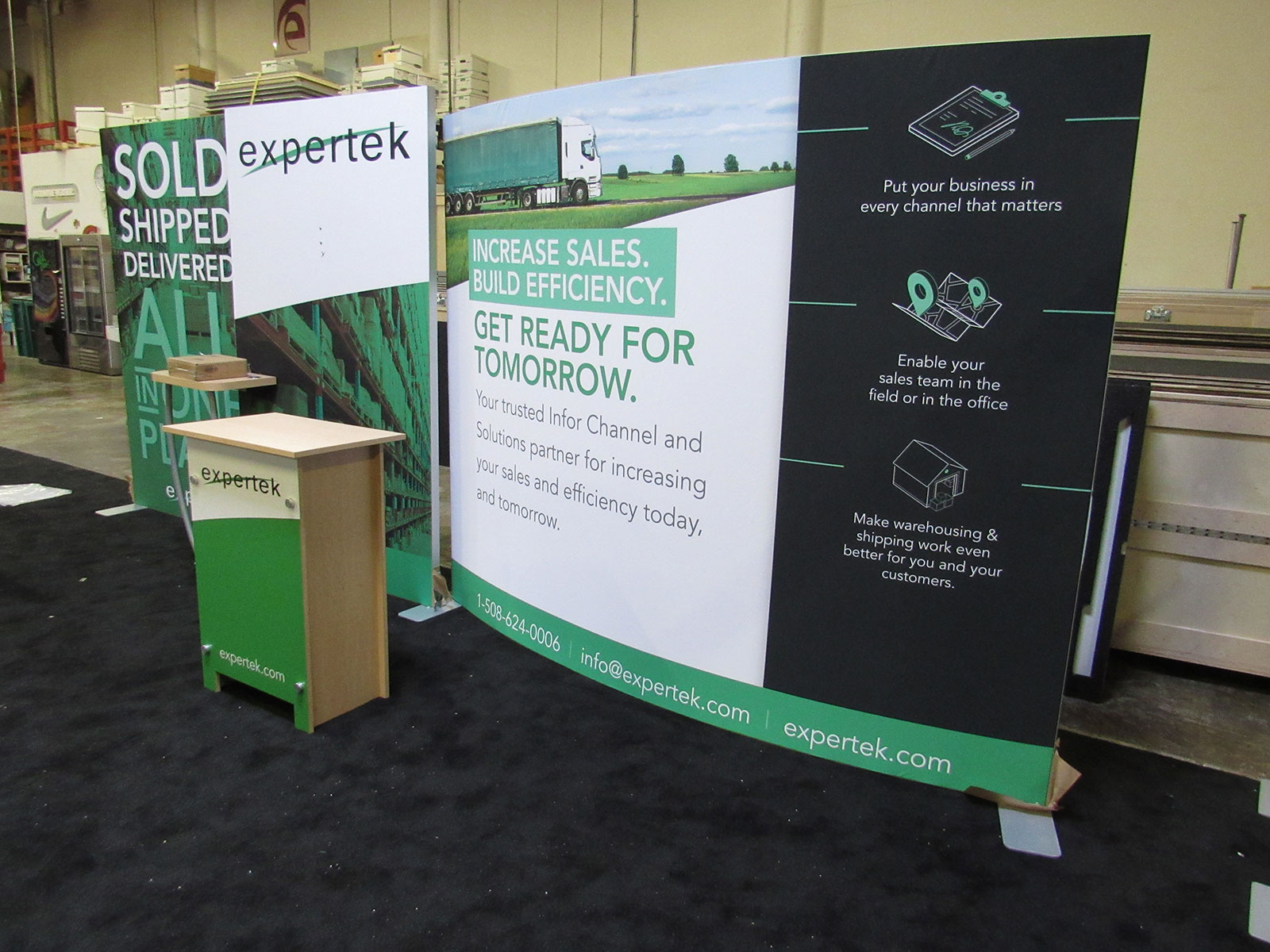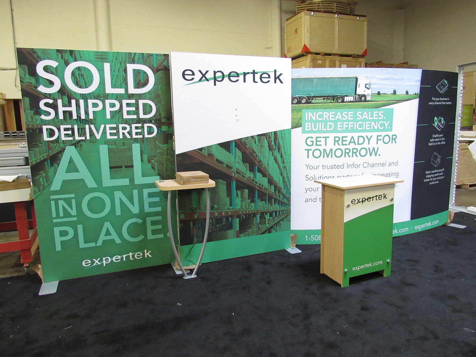 Modified SYK-2022 Symphony Portable Display with SEG Fabric Graphics, Monitor Mount, Workstation with Wireless Charging, and (1) SYM-407 Counter with Locking Storage Modified SYK-2022 Symphony Portable Display with SEG Fabric Graphics, Monitor Mount, Workstation with Wireless Charging, and (1) SYM-407 Counter with Locking Storage SYM-407 Counter Show photo