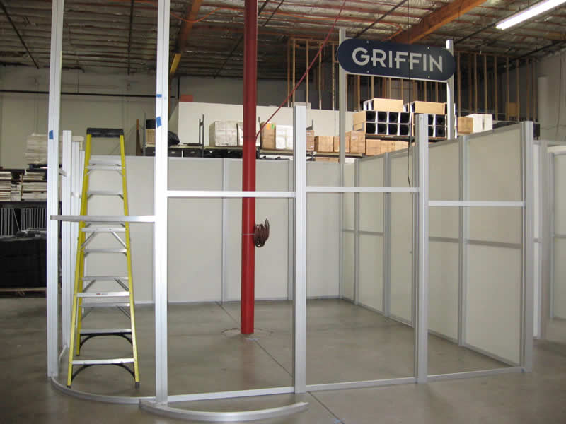 RENTAL Exhibit -- 20� x 40� Island with Large Conference Rooms, 12� High Graphic Tower. Shown during Preliminary Setup
