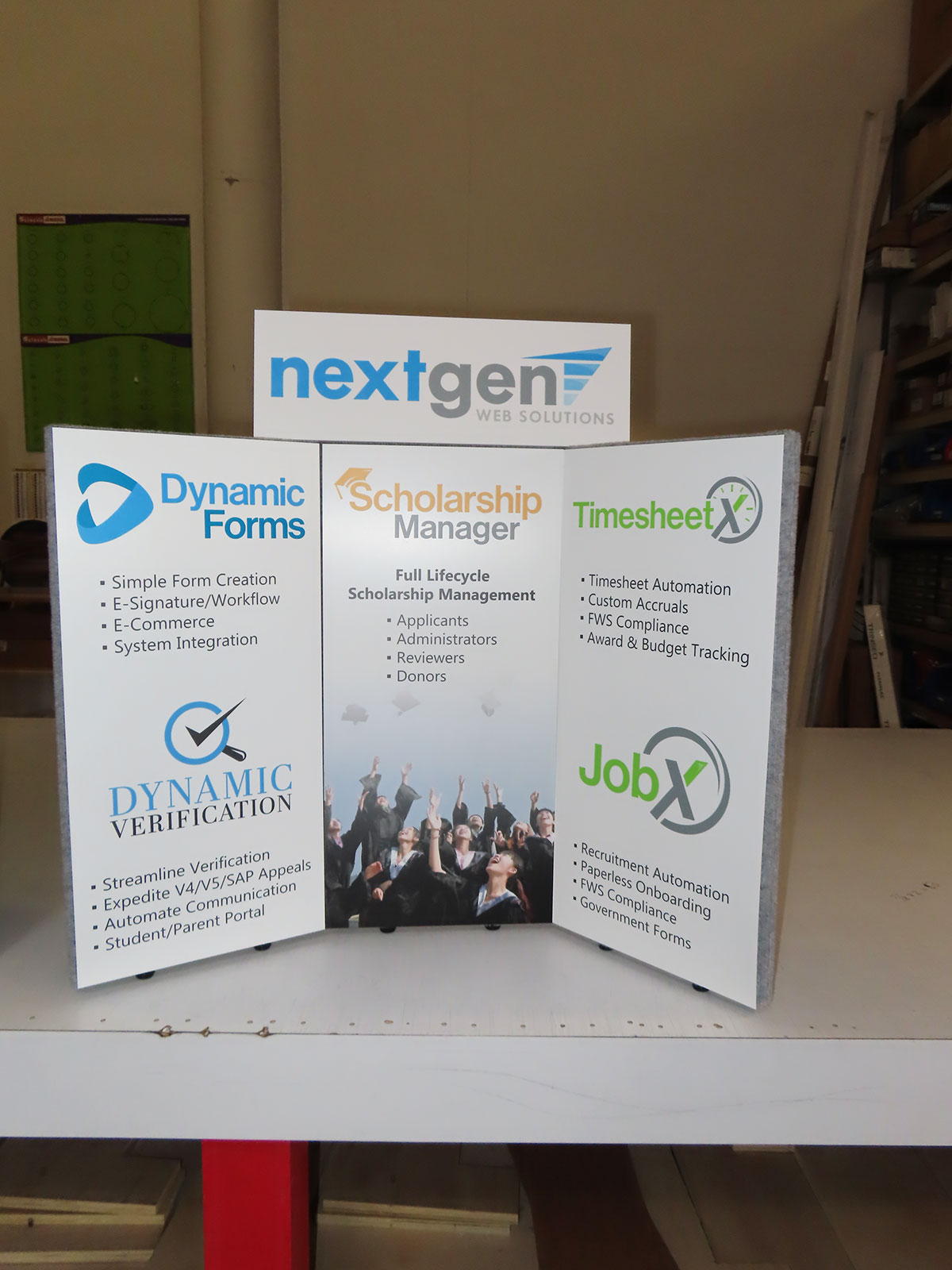 (2) FT-01 Folding Fabric Tabletops with Three Panels and Graphics (2) FT-01 Folding Fabric Tabletops with Three Panels and Graphics -- View 2