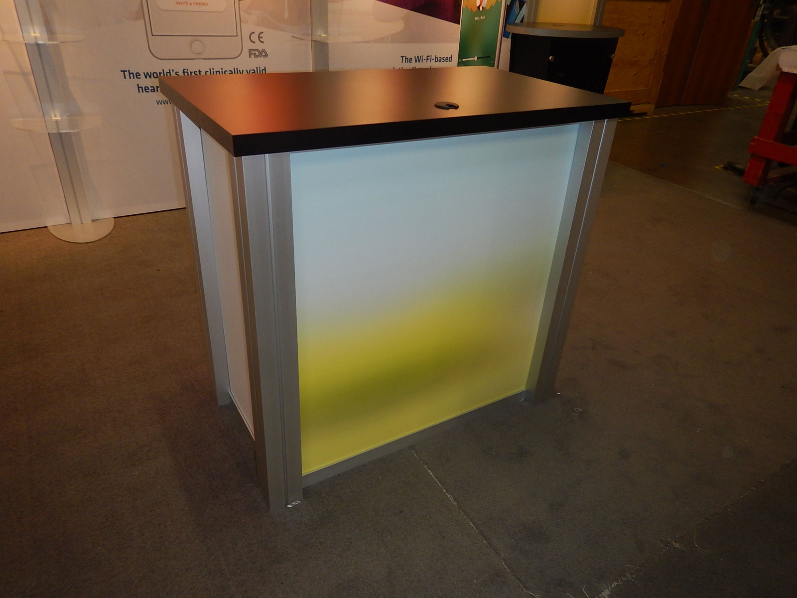 RENTAL: RE-2009 with Arch Canopy, (2) RE-1201 Tapered Counter Workstations, (1) RE-1202 Rectangular Counter, (8) Clear Acrylic Shelves, (8) Arm Lights, Tension Fabric Graphics, Sintra Arch Header and Counter Infill Graphics RENTAL: RE-2009 with Arch Canopy, (2) RE-1201 Tapered Counter Workstations, (1) RE-1202 Rectangular Counter, (8) Clear Acrylic Shelves, (8) Arm Lights, Tension Fabric Graphics, Sintra Arch Header and Counter Infill Graphics RENTAL:  (1) RE-1202 Rectangular Counter