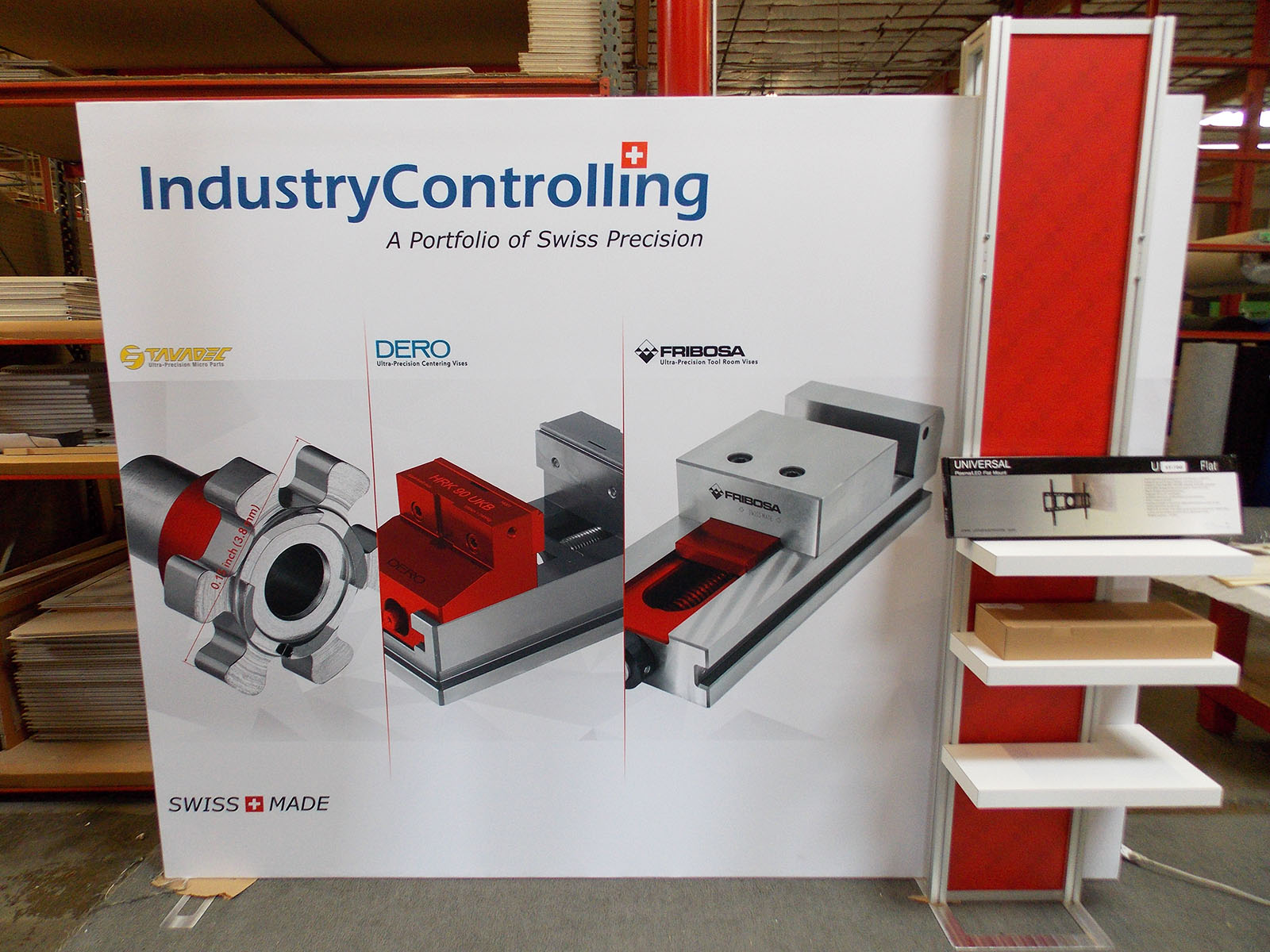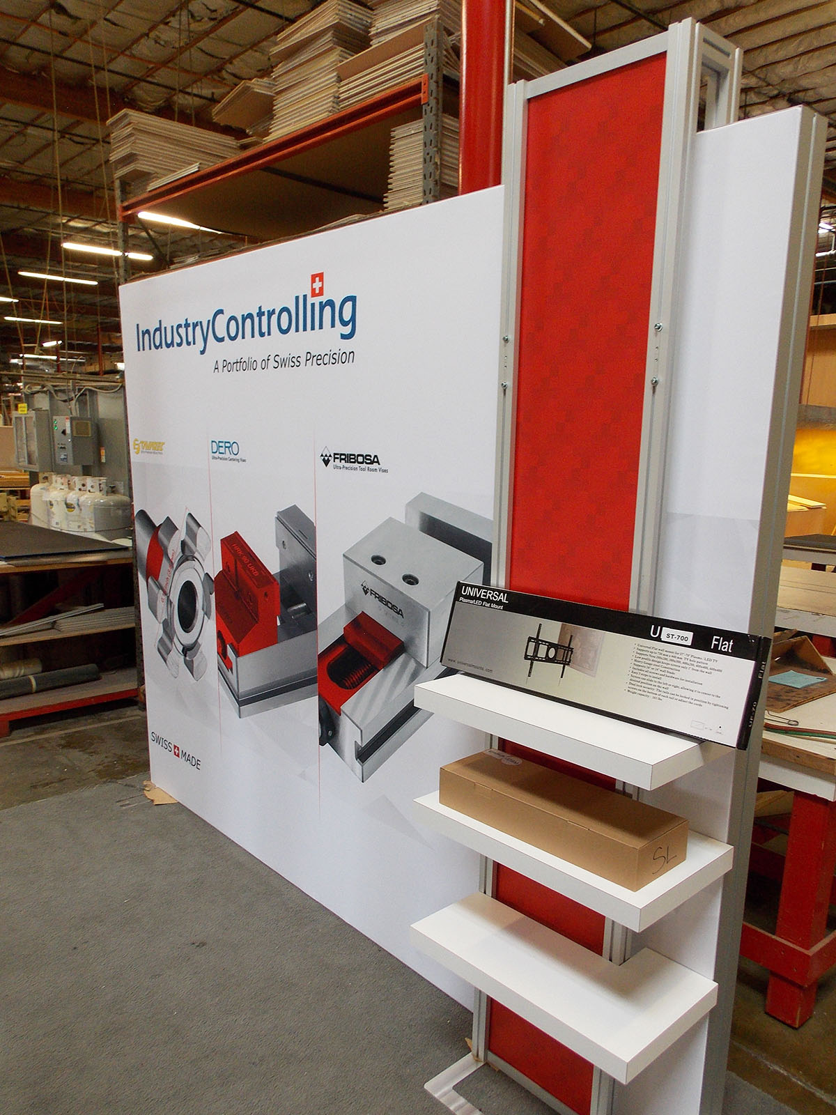 ecoSmart Modified ECO-1066-A Hybrid Display with SEG Tension Fabric Graphics, Adjustable Wrap Around Shelves, Graphic Infills and Monitor Mount [53700]