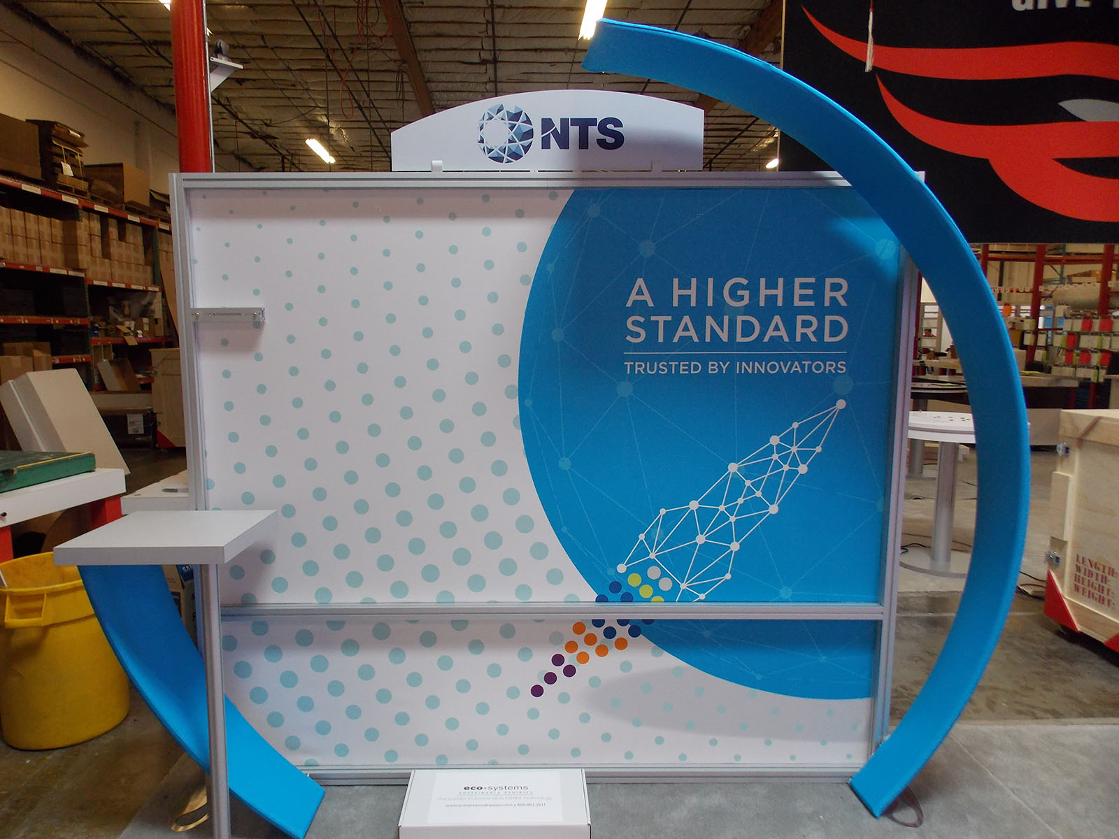 ecoSmart ECO-1009 with Recycled Aluminum Frame, Curved Recycled Aluminum Curved Accents with fabric graphic, FSC Countertop, ECO-Board Header Graphic, and LED Lighting [53184]