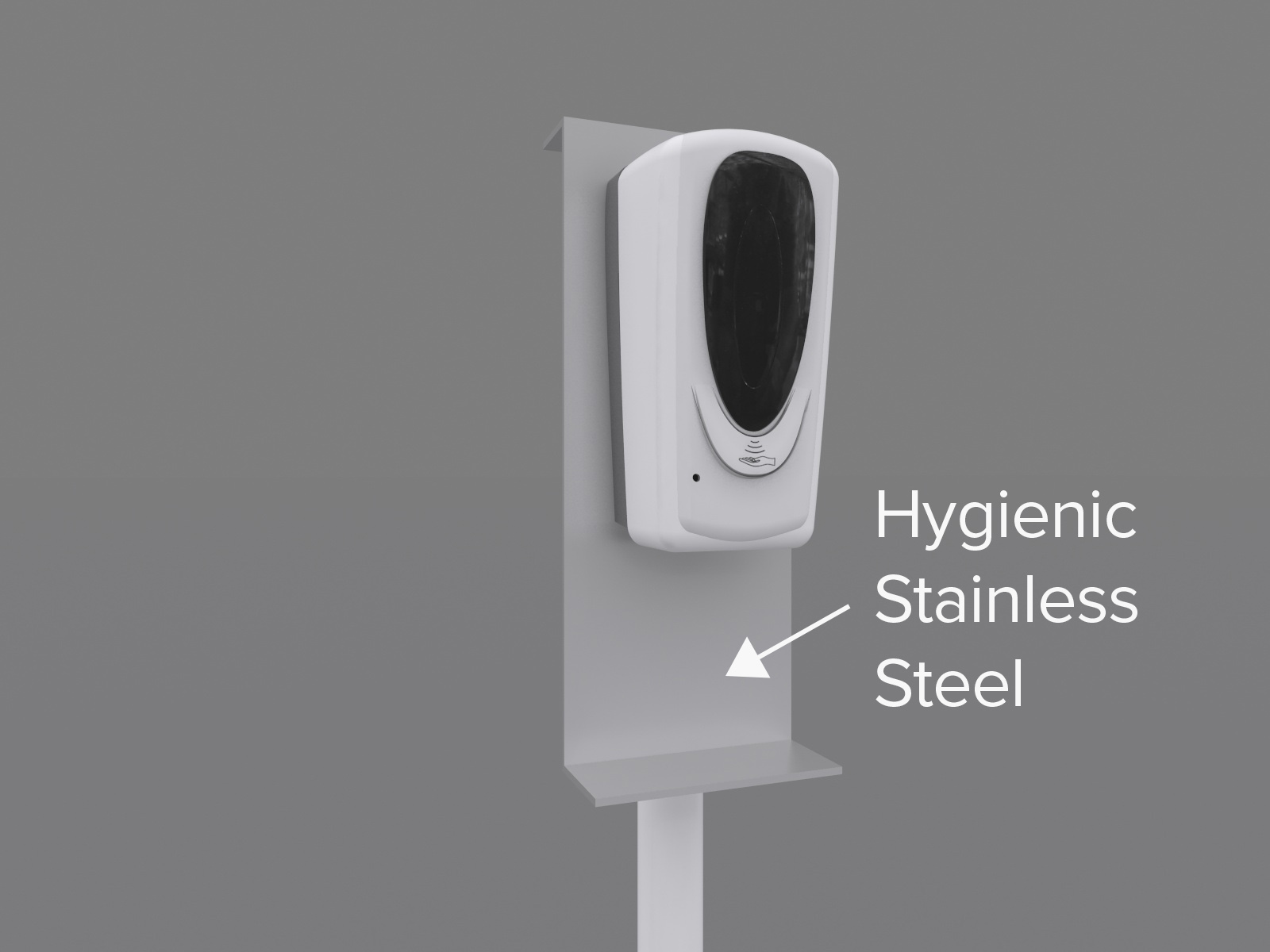Most hand sanitizer stands are flimsy and disposable. Built for short-term use and then replaced. The Stand Tough Sanitizer Stands are designed for years of active use using engineered aluminum extrusion and solid steel base plates. The powder-coated white finish and stainless steel mounting plate makes them easy to clean and resistant to scratches and chips. Assembly couldn't be easier, taking just minutes using a hex key tool (included).