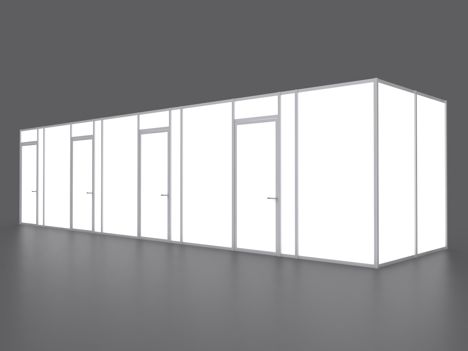 Modular Examination Rooms and Registration Stations are ideal as temporary structures, such as offsite facilities, overflow demands, or whenever construction requires short-term offices. The engineered aluminum frames are lightweight and satin anodized, making them incredibly durable and easy to clean. The frames assembly quickly, either with attached clips (Gravitee frames) or with a simple hex key (MODUL structures). The modular design allows them to expand or reconfigure, typically without disassembly of the existing structures.