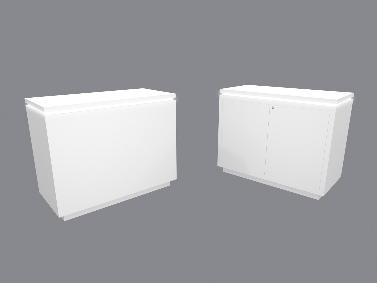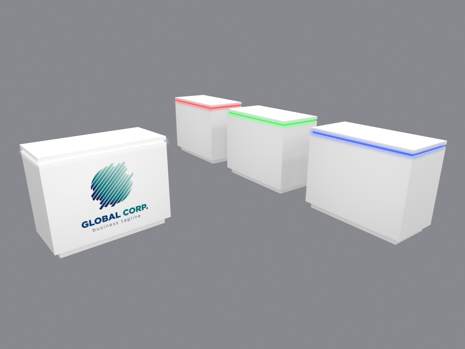 Custom Rental Counters and Pedestals offer the convenience of a fully-assembled component with all the benefits of a custom design. Choose one of the many existing kit designs or request a design unique to your trade show needs. Either way, you'll discover why a custom counter or pedestal adds sophistication and features not found on most portable or modular components. Nearly all come with locking storage. Don't see exactly what you want? No problem. We specialize in designing and building counters and pedestals that meet any need.