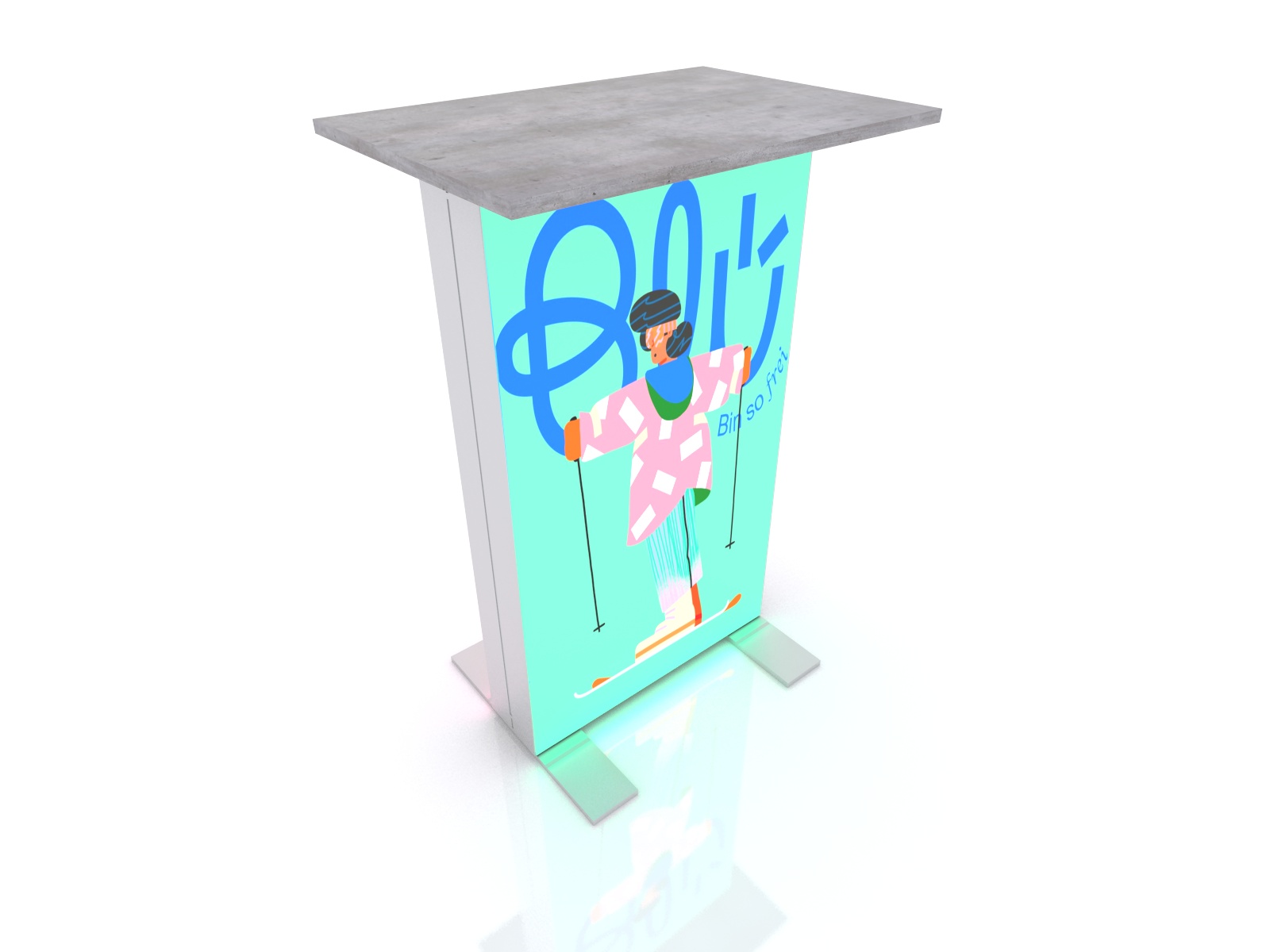 These beautiful backlit counters are ideal for both inline and island exhibits. The double-sided backlit fabric graphics will attract attention from any angle. The large countertops make them practical. The counters assemble without tools and can be packed in a portable roto-molded case with wheels. The engineered aluminum frames ensure they're both lightweight and durable, and the attached LED modules make them worry-free for years. Choose from hundreds of laminate finishes.