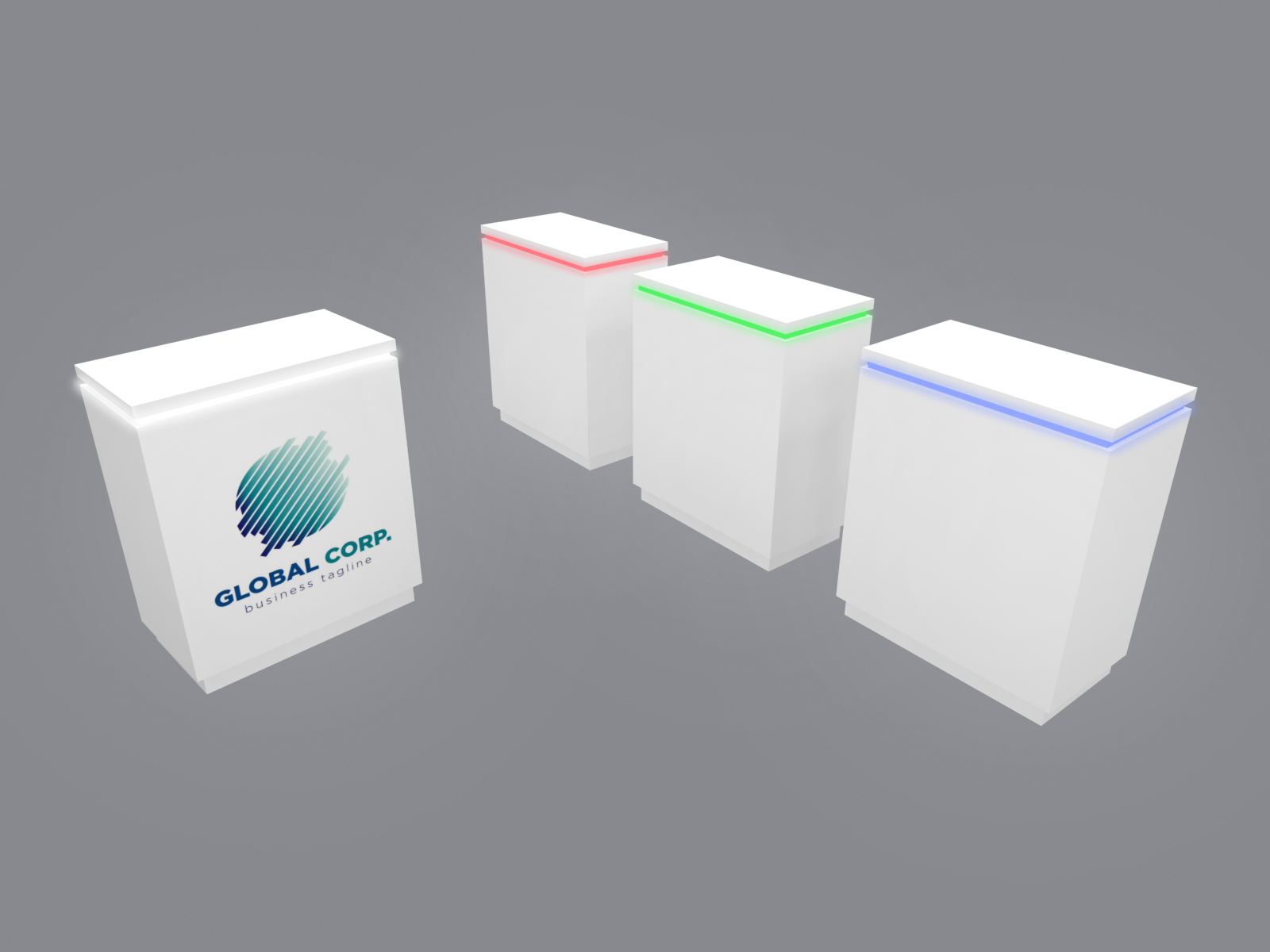 Custom Rental Counters and Pedestals offer the convenience of a fully-assembled component with all the benefits of a custom design. Choose one of the many existing kit designs or request a design unique to your trade show needs. Either way, you'll discover why a custom counter or pedestal adds sophistication and features not found on most portable or modular components. Nearly all come with locking storage. Don't see exactly what you want? No problem. We specialize in designing and building counters and pedestals that meet any need.