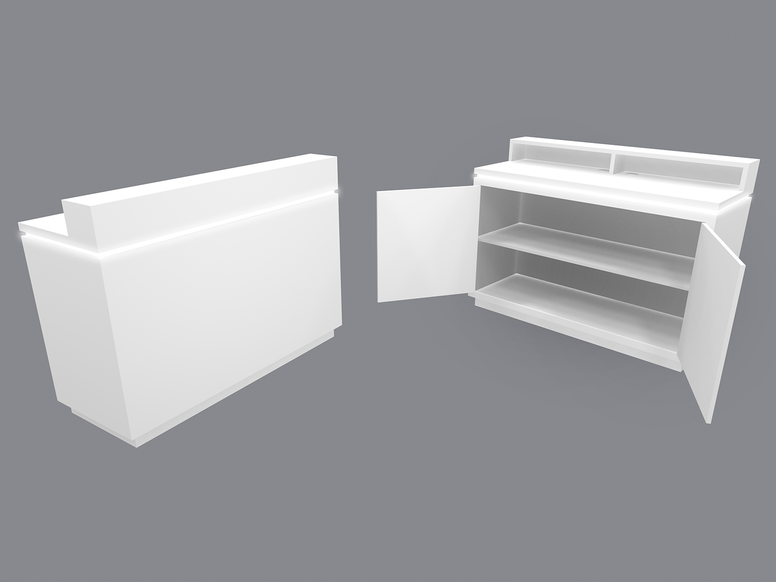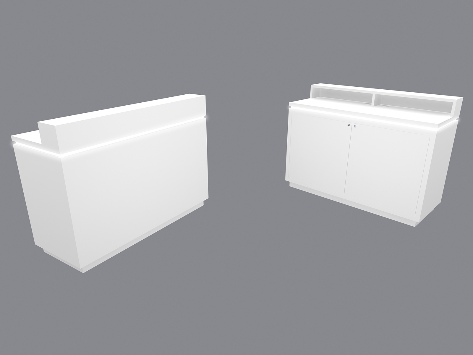 Custom Rental Counters and Pedestals offer the convenience of a fully-assembled component with all the benefits of a custom design. Choose one of the many existing kit designs or request a design unique to your trade show needs. Either way, you'll discover why a custom counter or pedestal adds sophistication and features not found on most portable or modular components. Nearly all come with locking storage. Don't see exactly what you want? No problem. We specialize in designing and building counters and pedestals that meet any need.