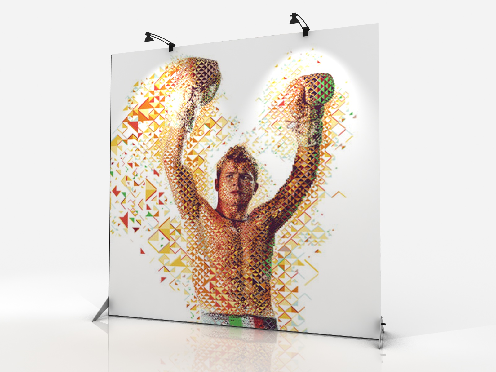 If you are considering a pop up display, then consider the SEGUE Sunrise instead. The Sunrise offers all the advantages of a pop up -- portability, ease of set-up, and a large graphic – with the benefits of a large format tension fabric graphic, aluminum frame, and no-tools assembly. Assembly takes less than 40 minutes for most kits. Best of all, the 7 ½ x 7 ½ silicone edge graphic guarantees a perfect fit every time, and the fabric graphics mean worry-free performance from show to show. You can even wash them.