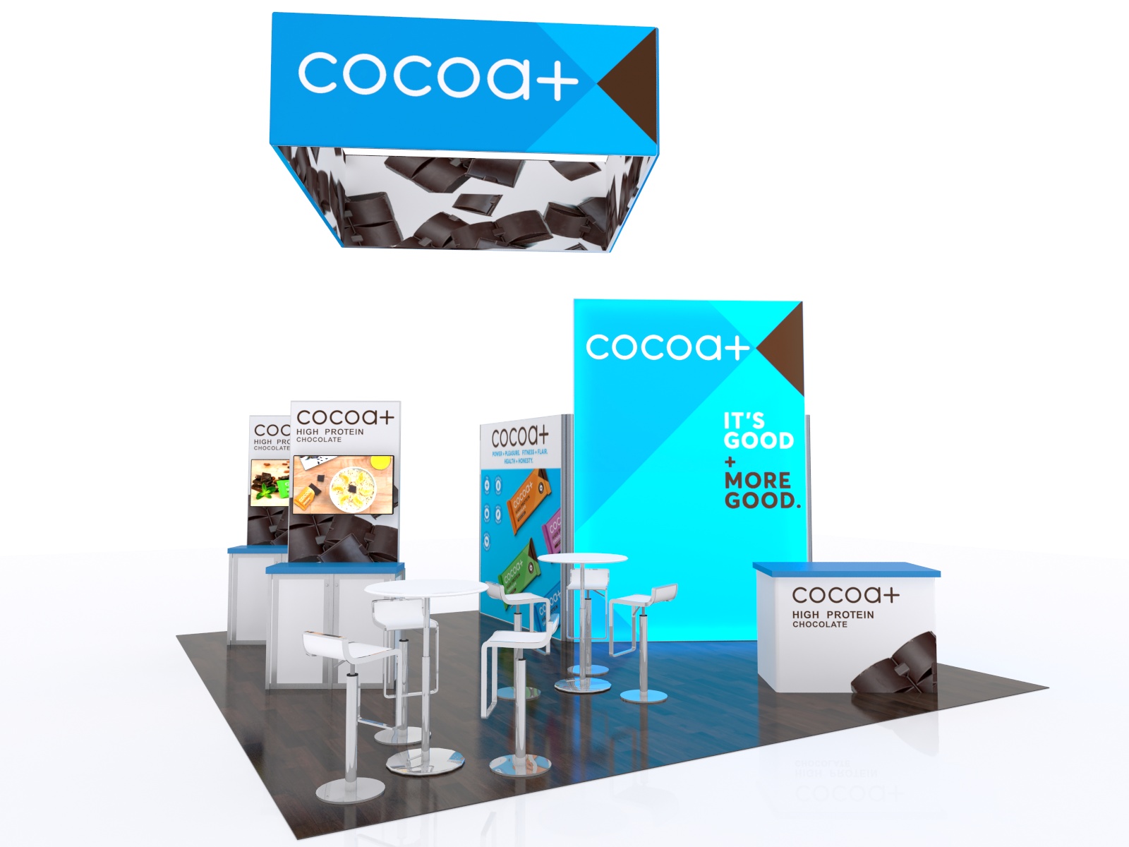 Quite often, a few custom elements added to the design can give the entire design a custom look even if it’s as simple as some colorful laminated workstations, shelves, or a reception counter. Custom laminated soffits and backlighting are also nice touches that are inexpensive and well worth the investment. As a bonus, if you re-rent the same exhibit, your second rental will most likely be less expensive, since your first rental covered the cost of those custom components.