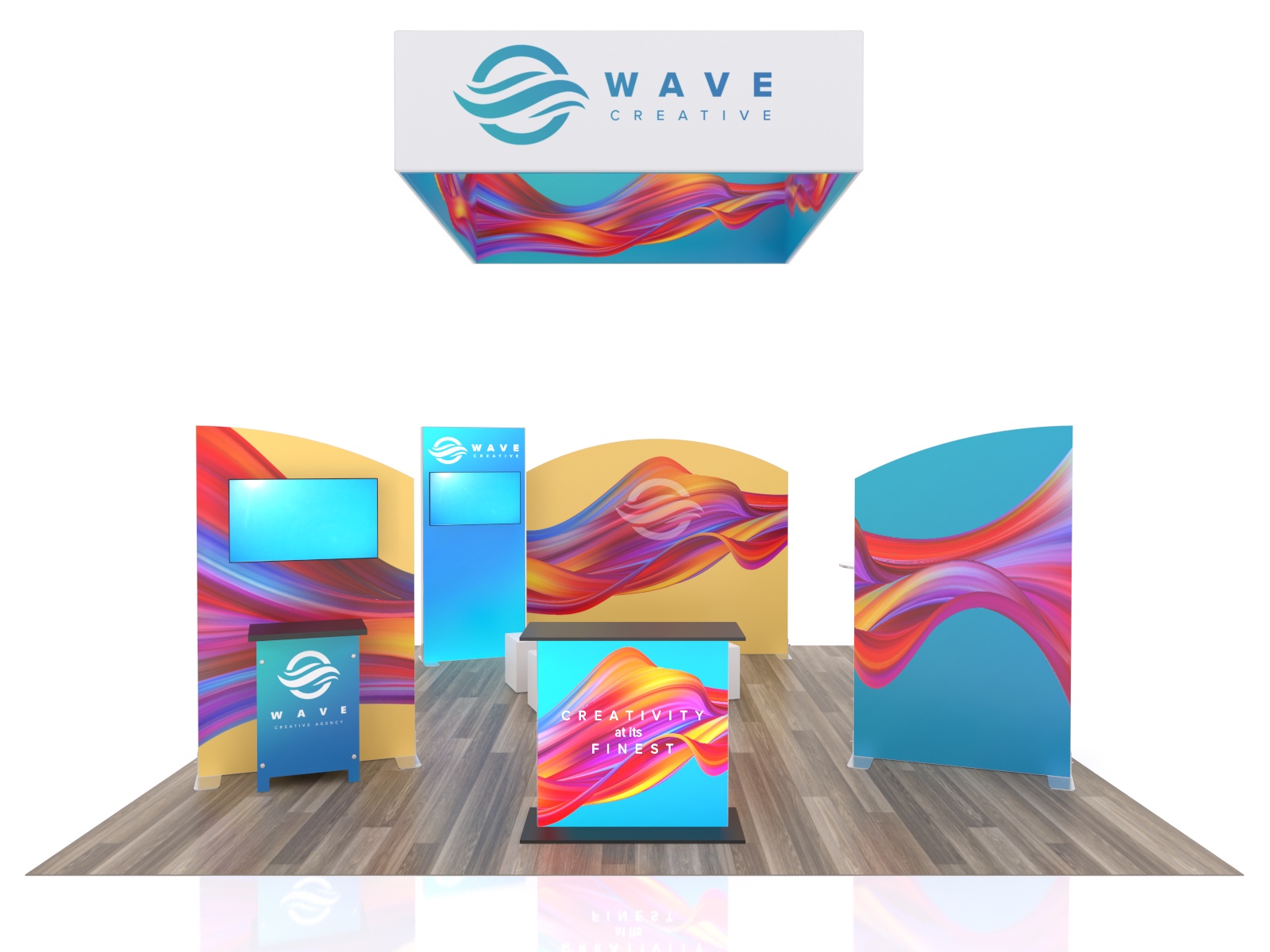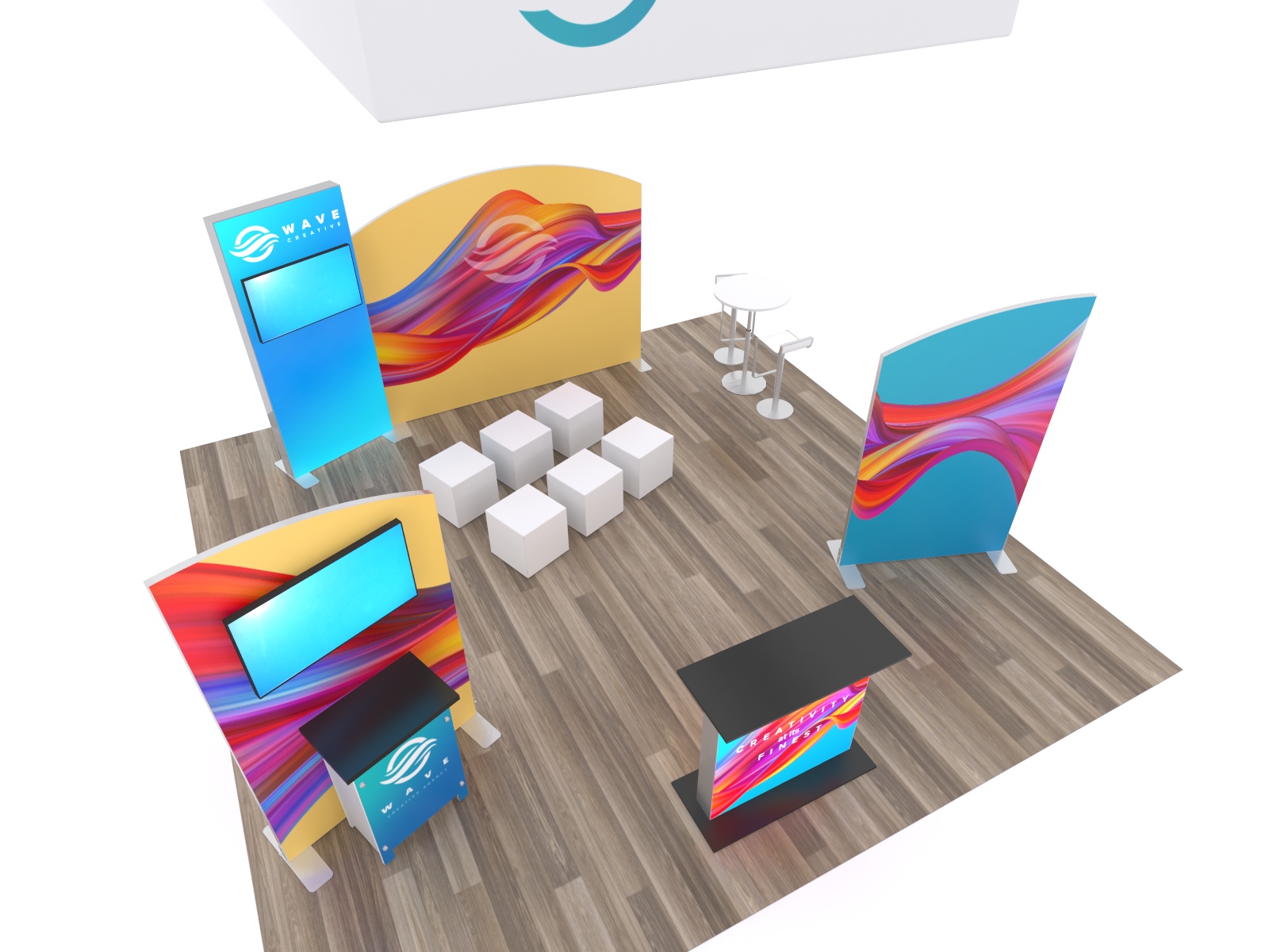 How do you maximize your trade show presence and minimize your exhibit purchase price? Consider the re-configuraable RE-1090, RE-2132, and RE-9168 Series. Either start with the 10 x 10 design and add components as your show schedule grows or go big right from the start with the 20 x 20 island. The modular components and mostly tool-less assembly offer flexibility, quick setup, and affordability to any exhibitor. Features include single or double-sided graphics, monitor mounts, secure locking storage, and a 42" W x 95" H SuperNova LED lightbox. Choose from accessories like literature trays, tablet clamshells, floating graphics, shelves, and workstations with wireless charging.