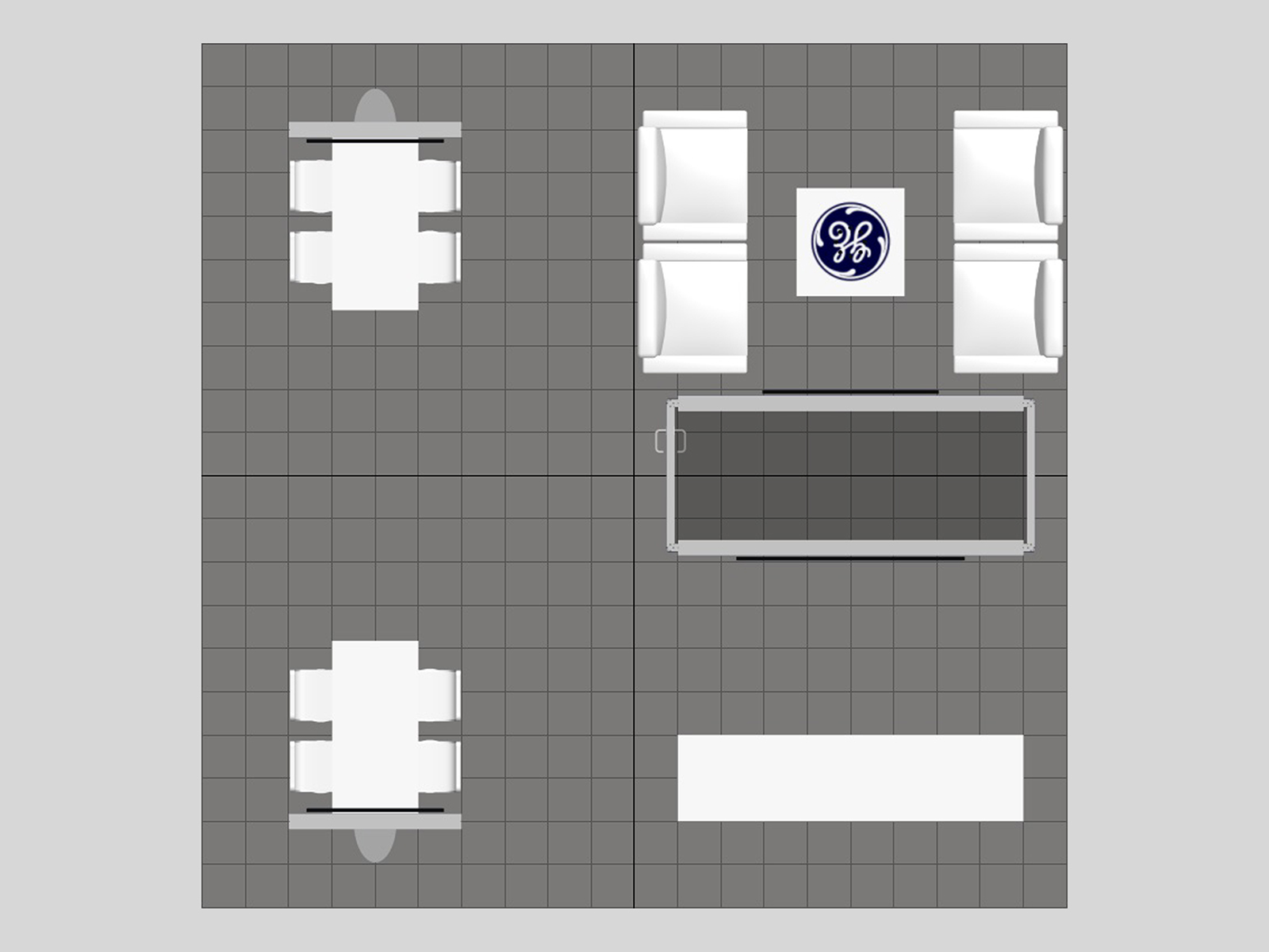 Every exhibit design should start with a clear marketing strategy. In other words, what's the purpose of the exhibit. The RE-9190, 9191, and 9192 islands are perfect examples of a well-defined strategy paired with an attractive yet functional design. Each island starts with a large center tower, ideal for storage, large format graphics, and supporting the main monitor. In front of the tower is an upscale reception desk with LED accent lights and locking storage.