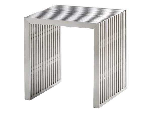 Brushed metal mid-century classic end table may also be used as a single seat ottoman for a timeless but modern look. Dimensions: