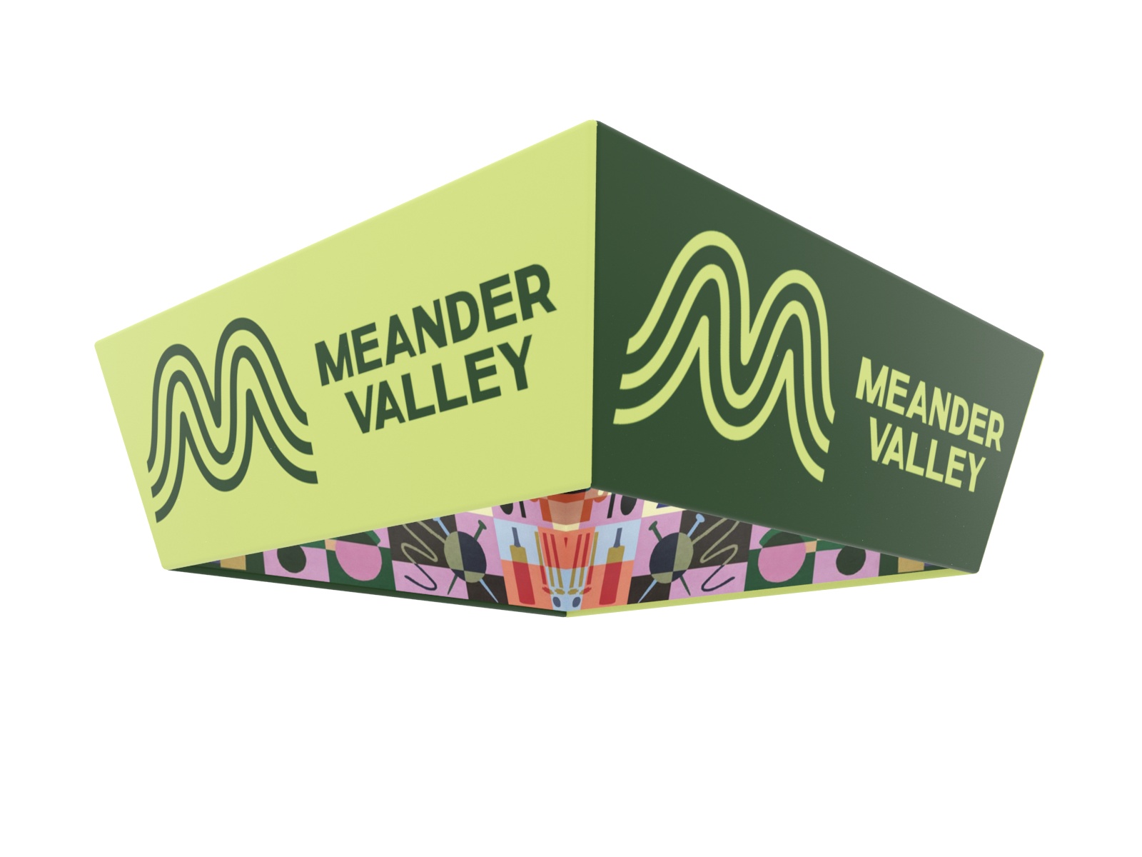 TF-1009 (3D) Tapered Square Hanging Sign -- View 2Choose from 18 standard shapes -- rounds, squares, pinwheels, rectangles, and triangles -- and over a one hundred sizes. Each piece is numbered for quick assembly, and the aluminum tubes pack in a durable zippered fabric bag. All components are milled to CNC tolerances. Don’t see the perfect shape for your display? Let us design one just for you. Click on the “Contact Us” button to request prices and additional information. Or give us a call.